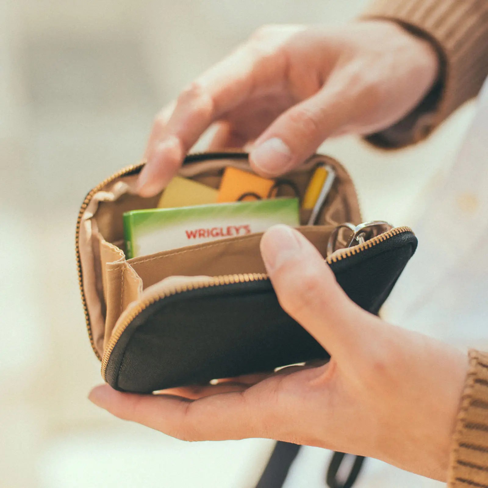 This pouch can hold small items like keys and accessories within your bag so they don’t get lost among everything else in it. We recommend storing all important items in this pouch to make them easy to find, and keeping the pouch on you when you’re out and about.