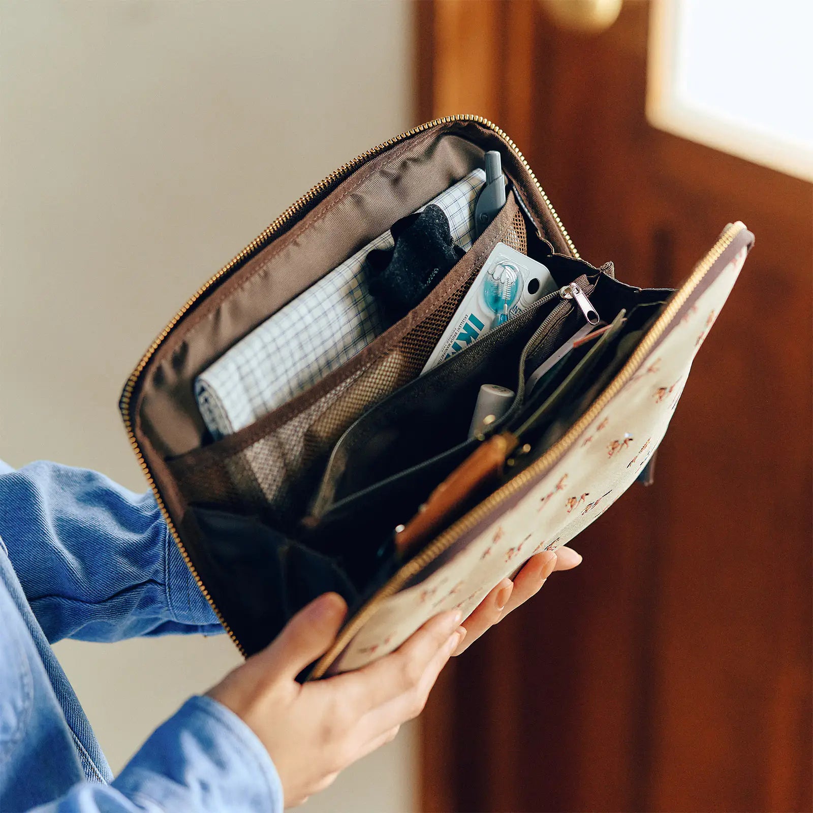 The Large Drawer Pouch’s accordion-style opening gives it plenty of room for accessories, stationery, cards, documents, checkbooks, and more while making it easy to organize all of them by category. The pouch includes two zipper pulls, making it easy to open from any point.