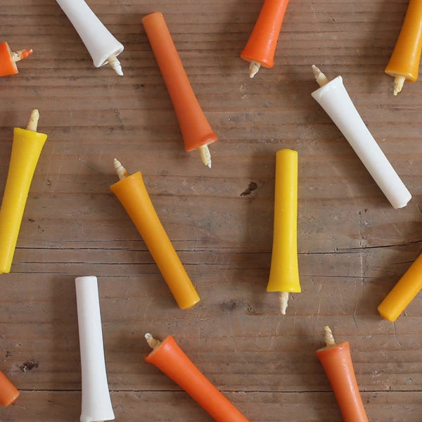 These candles are made of natural rice wax. They are dipped in colorful dyes to make them look fun to the eyes.