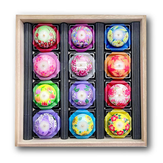 This listing is for a Echigo Flower Candle Hand Painted Round Candles 12 pcs Set - Four Seasons Flower -.