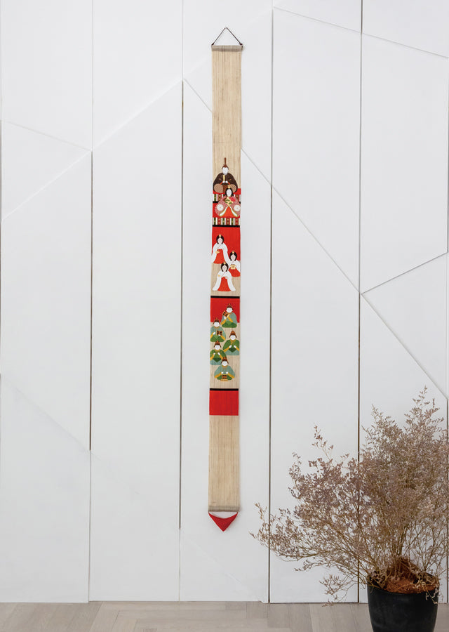 This listing is for a beautiful Hand-drawn and Hand-dyed Linen Japanese Narrow Tapestry - Hina Dolls -.