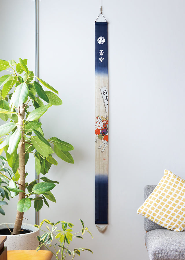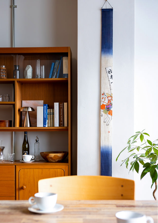 This listing is for a beautiful Hand-drawn and Hand-dyed Linen Japanese Narrow Tapestry - Shinme (sacred horse) and Wakadaishou (young leader) -.