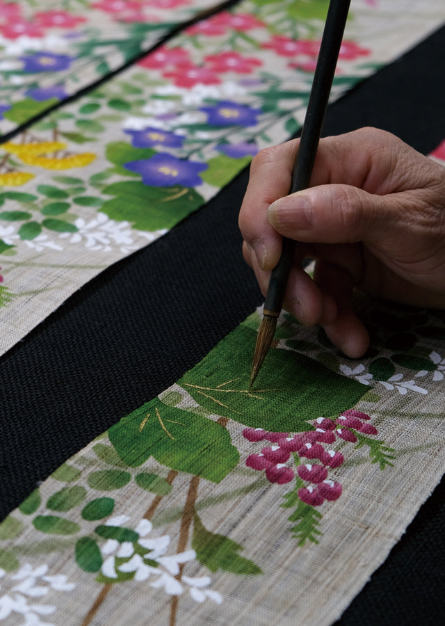 This listing is for a beautiful Hand-drawn and Hand-dyed Linen Japanese Narrow Tapestry - The Seven Flowers of Autumn -.