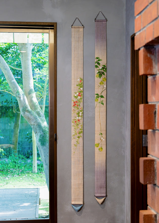 ■ Hand-dyed Linen Japanese Narrow Tapestry - Cypress Vine / Ecru -, Kyoto Noren, Japanese wall hanging scroll