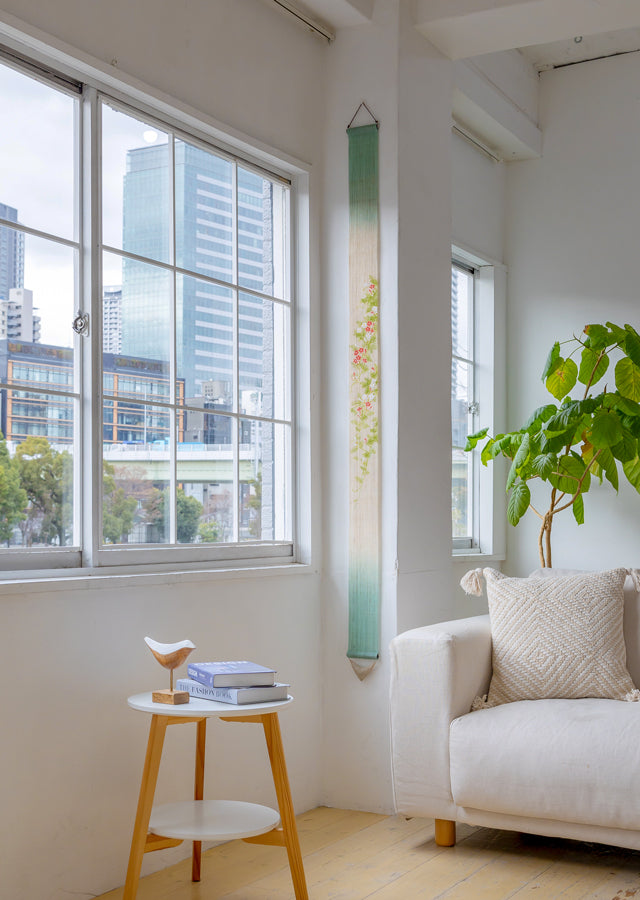Hand-dyed Linen Japanese Narrow Tapestry - Cypress Vine -, Kyoto Noren, Japanese wall hanging scroll