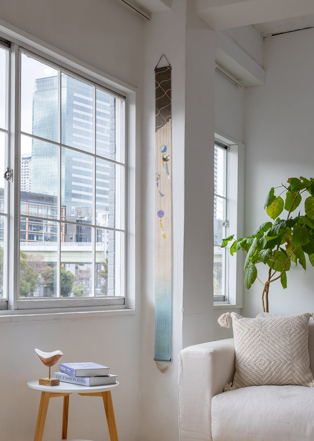 Hand-dyed Linen Japanese Narrow Tapestry - Furin(Japanese wind bell) -, Kyoto Noren, Japanese wall hanging scroll