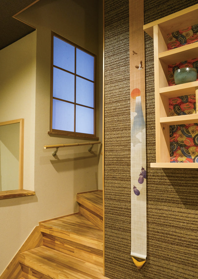 Hand-dyed Linen Japanese Narrow Tapestry - Hatsu-yume (The first dream of the year) -, Kyoto Noren, Japanese wall hanging scroll