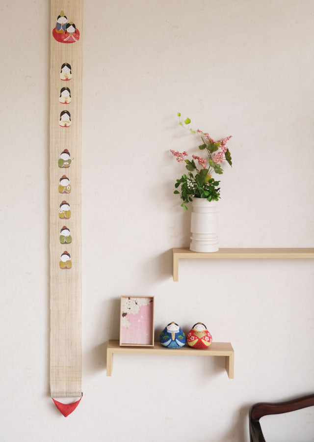Hand-dyed Linen Japanese Narrow Tapestry - Hinamatsuri (Doll's Festival) -, Kyoto Noren, Japanese wall hanging scroll