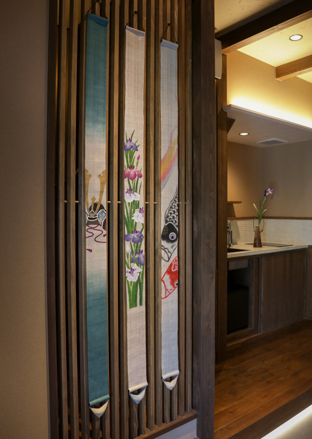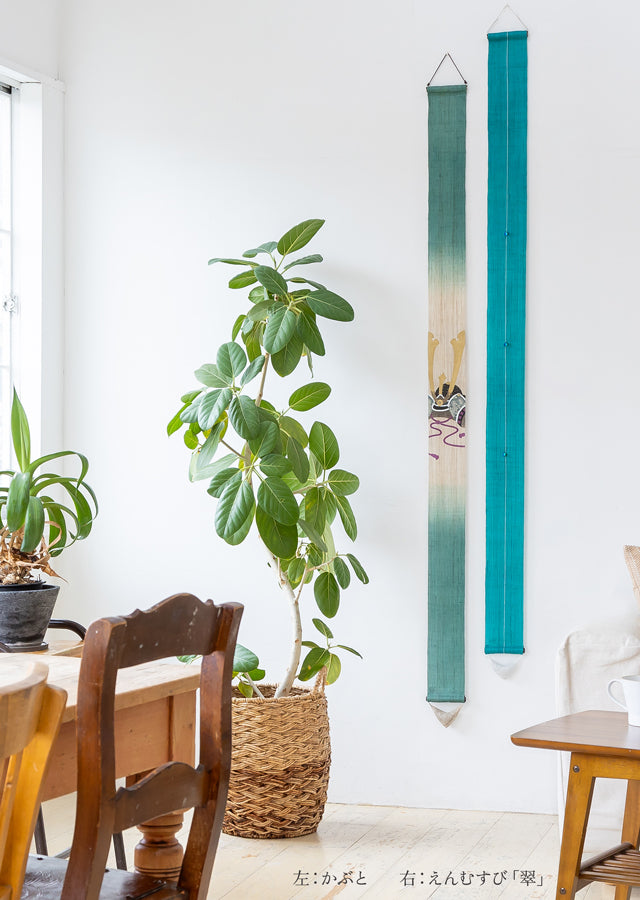 ■ Hand-dyed Linen Japanese Narrow Tapestry - Kabuto(Samurai helmet) -, Kyoto Noren, Japanese wall hanging scroll