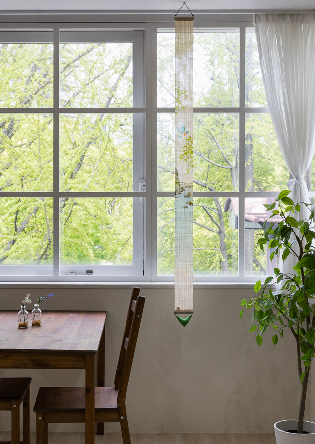 ■ Hand-dyed Linen Japanese Narrow Tapestry - Kingfisher -, Kyoto Noren, Japanese wall hanging scroll