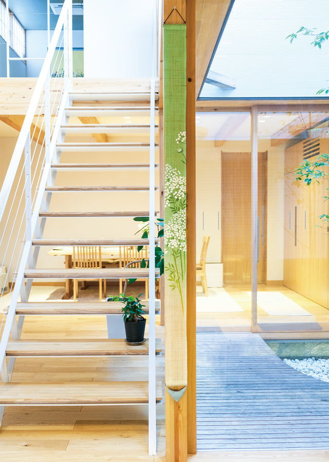 ■ Hand-dyed Linen Japanese Narrow Tapestry - Lace Flower -, Kyoto Noren, Japanese wall hanging scroll