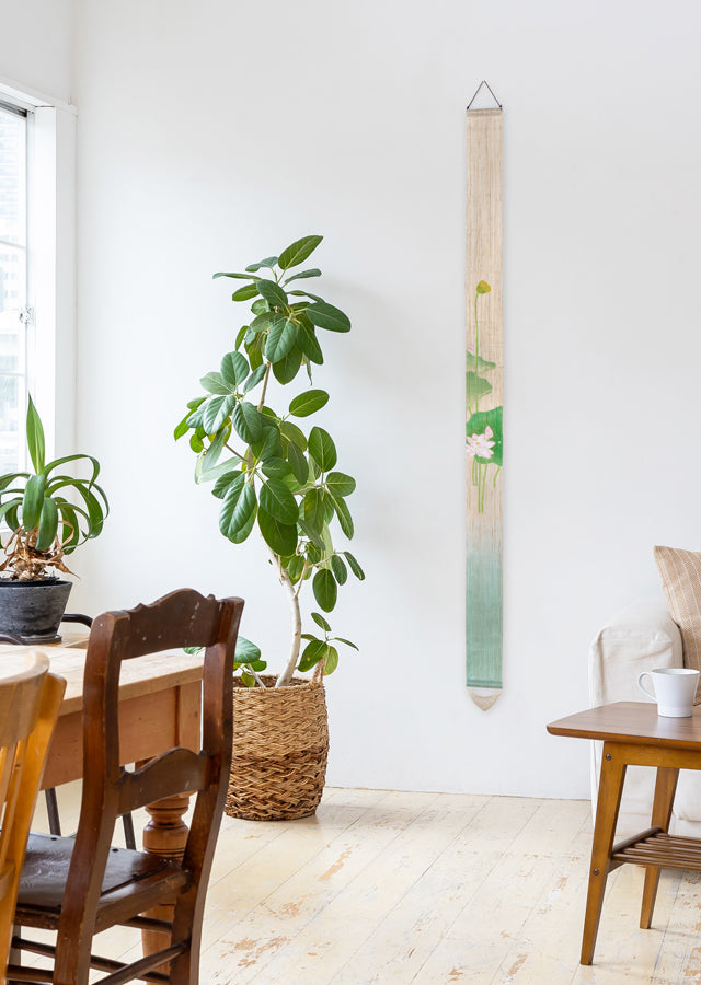 Hand-dyed Linen Japanese Narrow Tapestry - Lotus Flower -, Kyoto Noren, Japanese wall hanging scroll