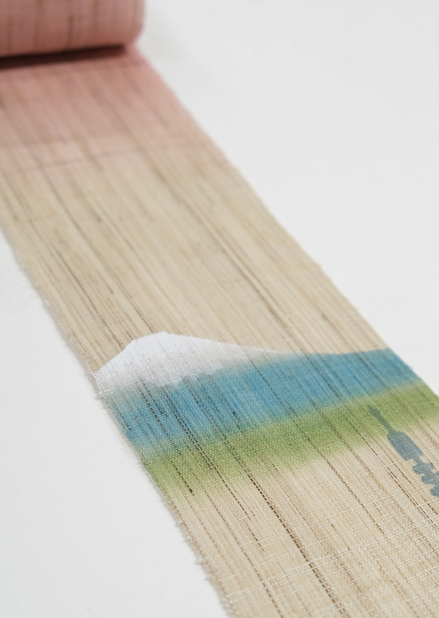 This listing is for a beautiful Hand-dyed Linen Japanese Narrow Tapestry - Mt.Fuji and Cherry Blossom -.