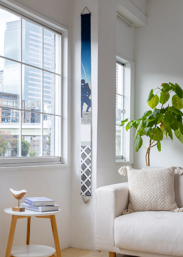 ■ Hand-dyed Linen Japanese Narrow Tapestry - Ninja -, Kyoto Noren, Japanese wall hanging scroll