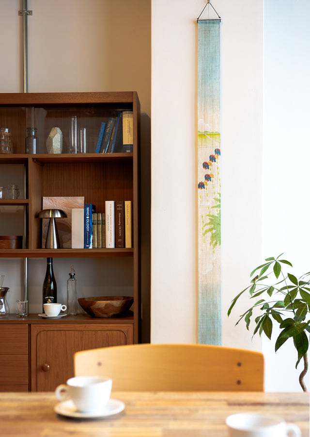 Hand-dyed Linen Japanese Narrow Tapestry - Saotome (rice planting women) -, Kyoto Noren, Japanese wall hanging scroll