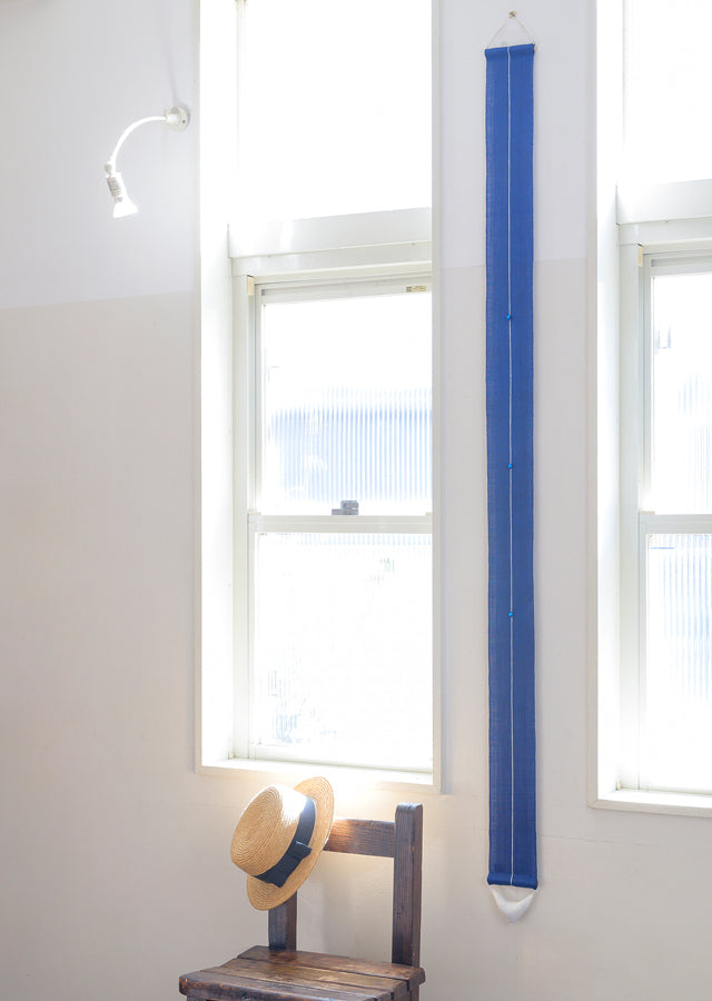 Hand-dyed Linen Japanese Narrow Tapestry with Hotaru Glass - Azure Color Glass -, Kyoto Noren, Japanese wall hanging scroll