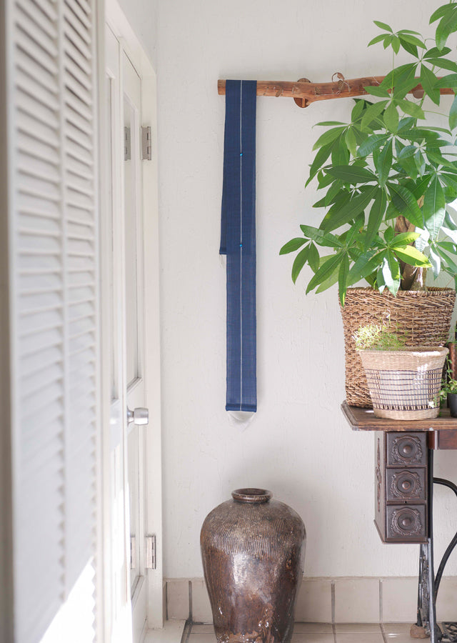 This listing is for a beautiful Hand-dyed Linen Japanese Narrow Tapestry with Hotaru Glass - Azure Color Glass -.