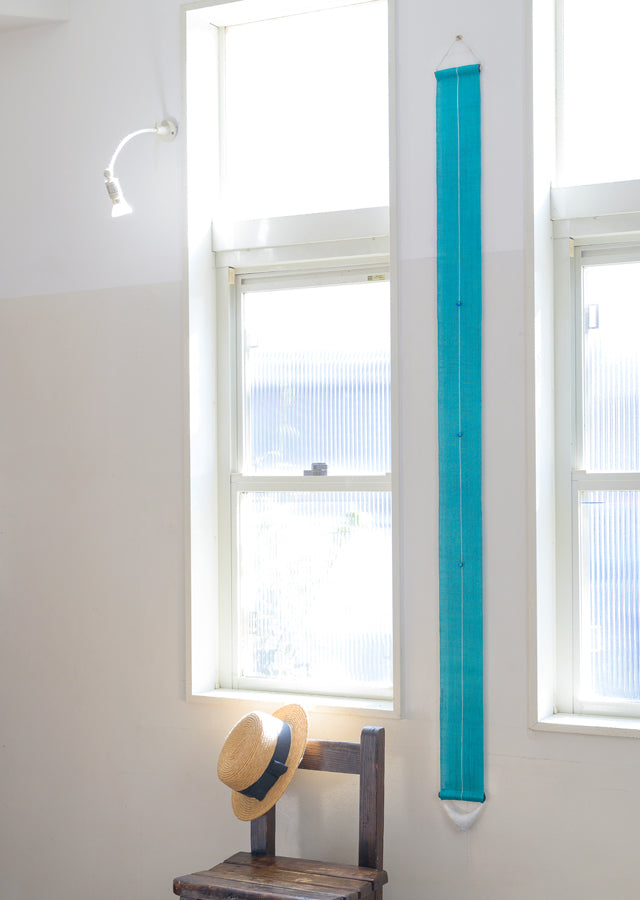 Hand-dyed Linen Japanese Narrow Tapestry with Hotaru Glass - Green Color Glass -, Kyoto Noren, Japanese wall hanging scroll