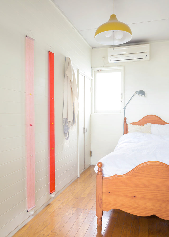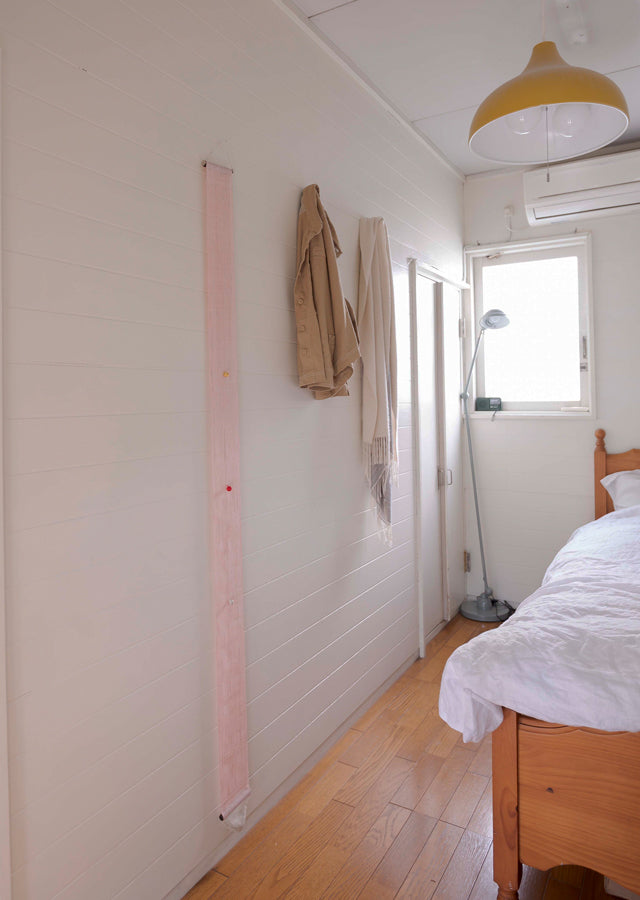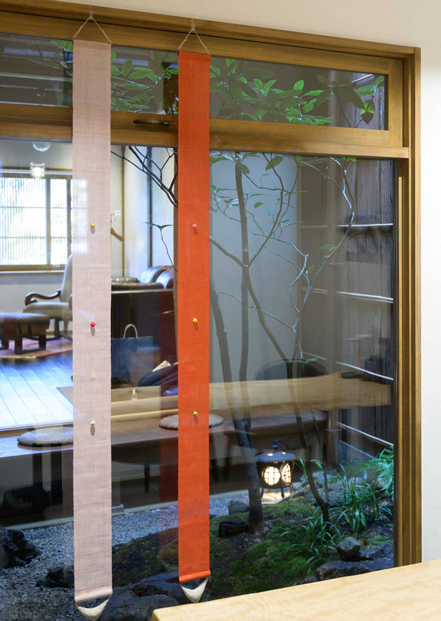 Hand-dyed Linen Japanese Narrow Tapestry with Kumihimo - Pink -, Kyoto Noren, Japanese wall hanging scroll