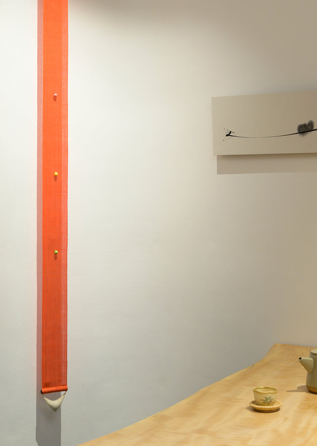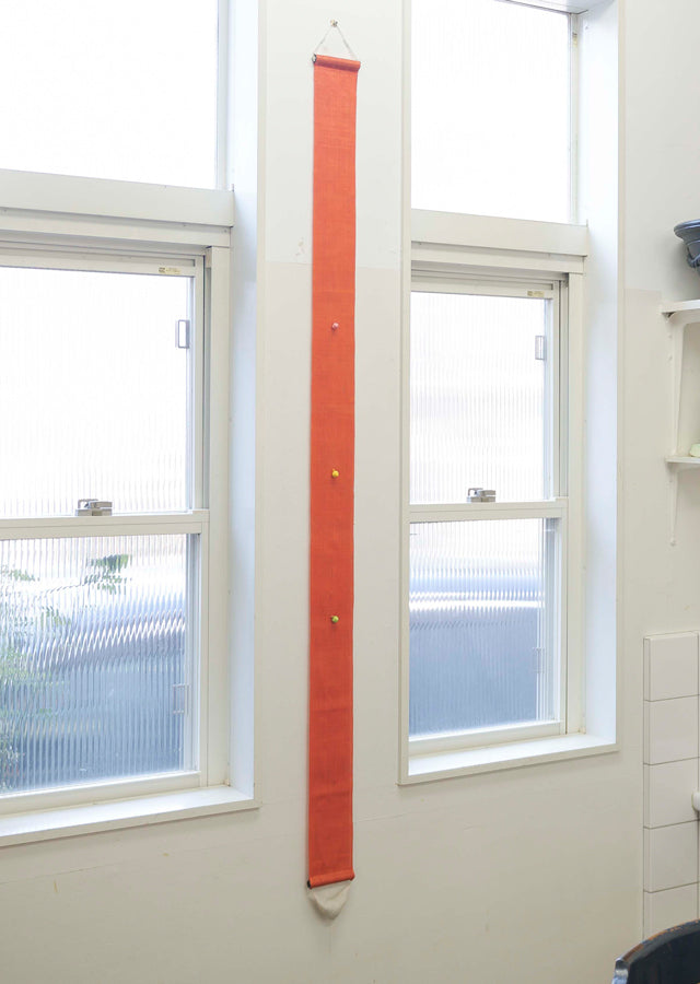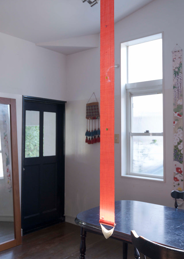 Hand-dyed Linen Japanese Narrow Tapestry with Kumihimo - Red -, Kyoto Noren, Japanese wall hanging scroll