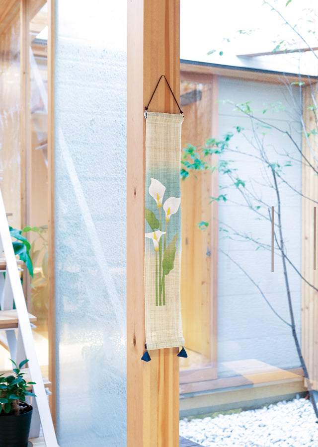 ■ Hand-dyed Linen Japanese Small Tapestry - Calla Lily -, Kyoto Noren, Japanese wall hanging scroll