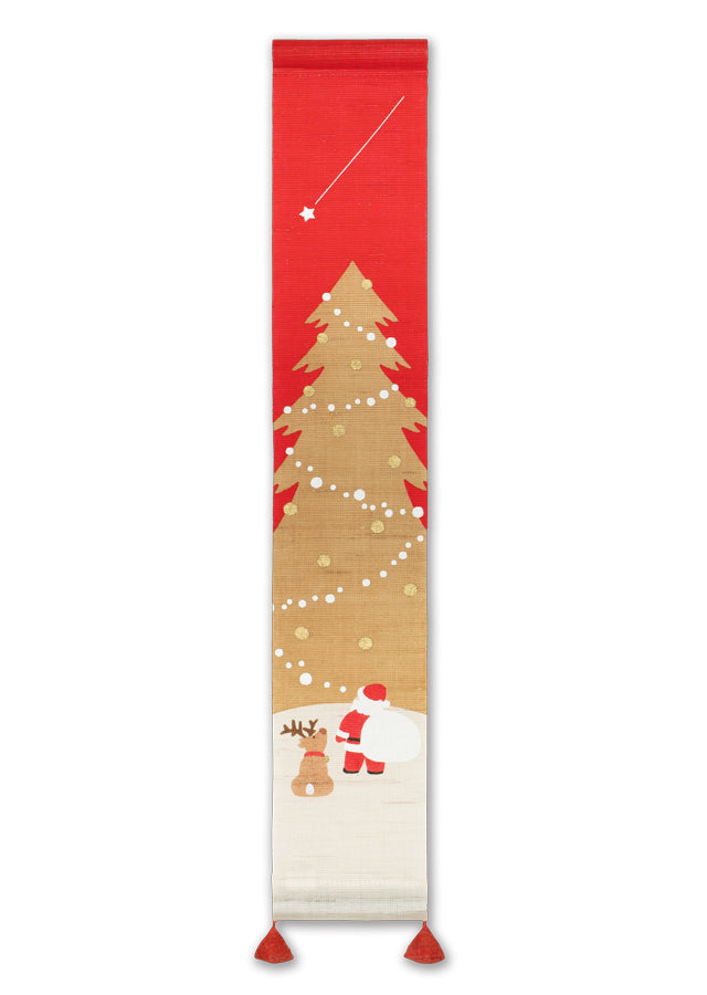 Hand-dyed Linen Japanese Small Tapestry - Christmas Night -, Kyoto Noren, Japanese wall hanging scroll