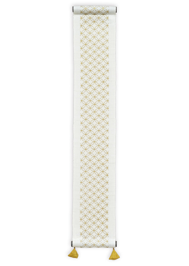 Hand-dyed Linen Japanese Small Tapestry - Shippo (Interlocking Circles) Pattern / Gold -, Kyoto Noren, Japanese wall hanging scroll
