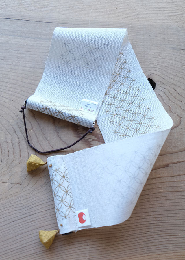 ■ Hand-dyed Linen Japanese Small Tapestry - Shippo (Interlocking Circles) Pattern / Gold -, Kyoto Noren, Japanese wall hanging scroll