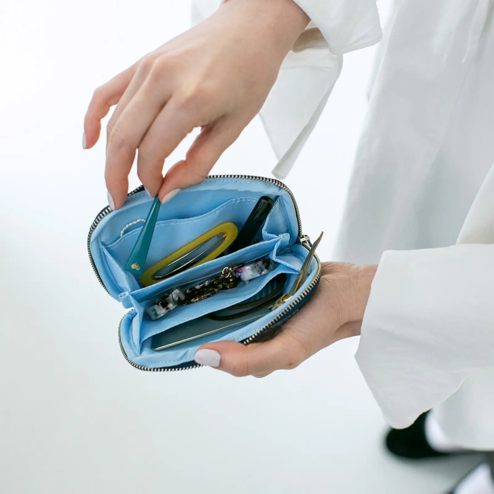 The Drawer Pouch Pocket is a mini pouch that can hold all your small items, like business cards, keys, earbuds, and more. Consider it a nicely organized drawer you can carry with you everywhere you go.