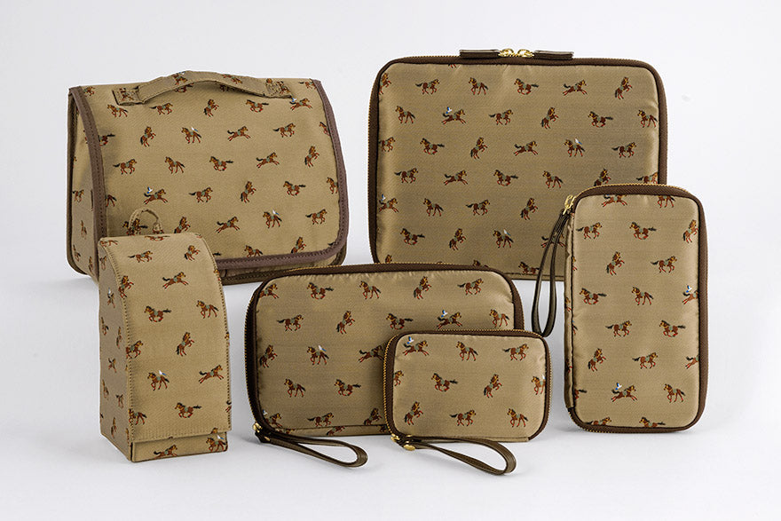 The Galloping Horses lineup includes not only the techo but also Drawer Pouches and Stappo made with the same fabric.