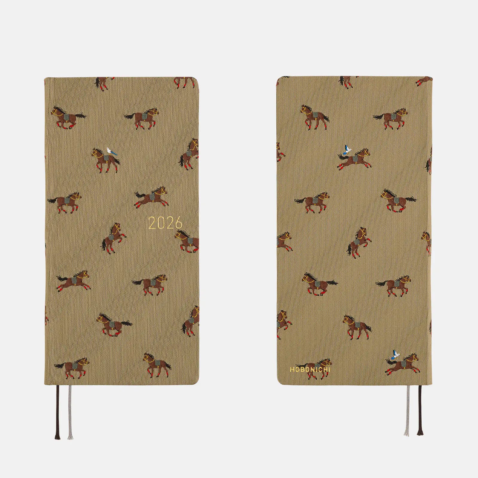 This listing is for a Hobonichi Techo 2026 Bow & Tie: Galloping Horses Weeks Mega Hardcover Book / Weekly Horizontal / Jan start / Mon start - English Edition.