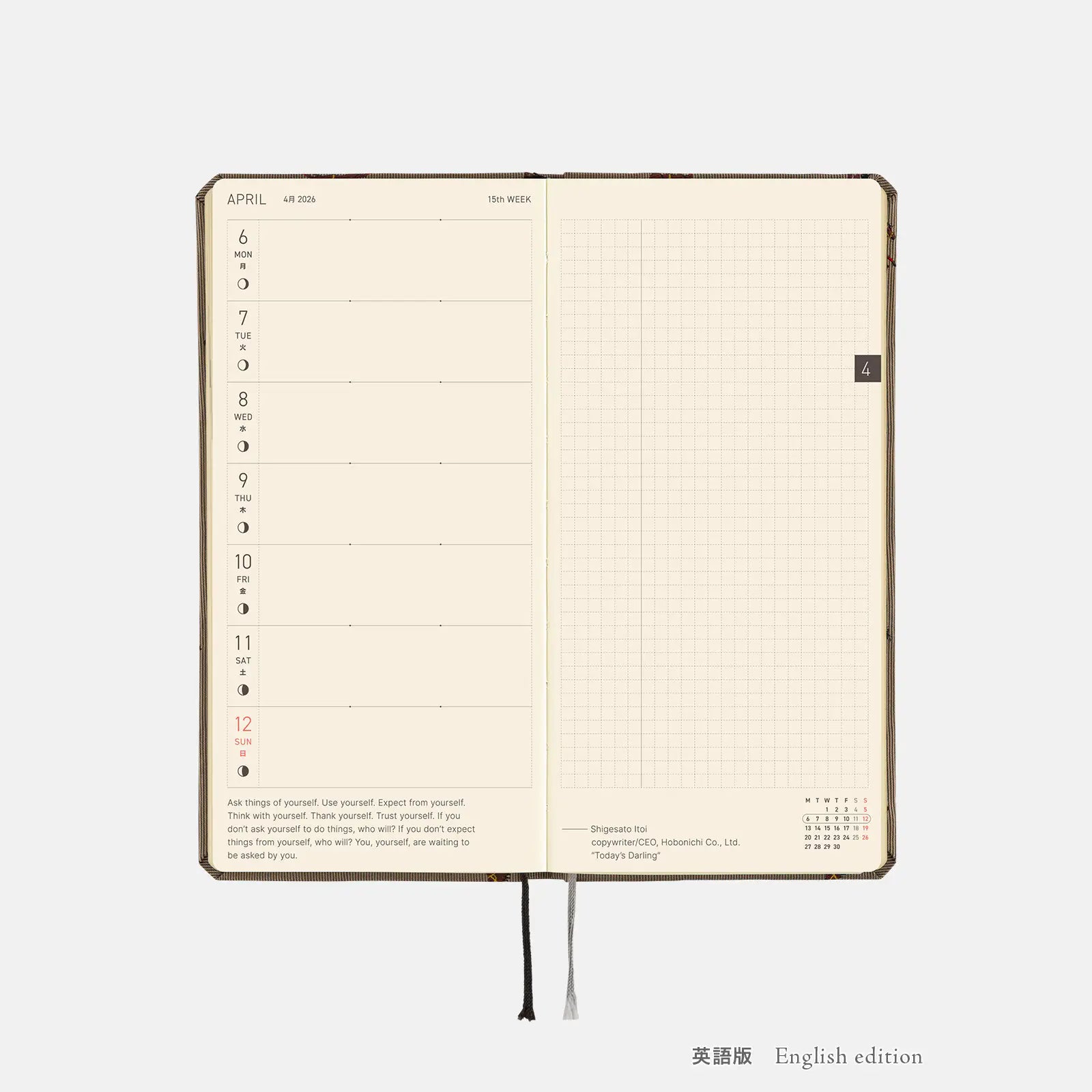 The Hobonichi Techo Weeks Mega is a version of the standard Weeks with around 3 times the amount of graph memo paper, for even more writing space. There are 215 pages (219 in the English version) of grid paper, so you never have to worry about how many pages you have left. Keep on writing, pasting and using the paper to your heart’s content.