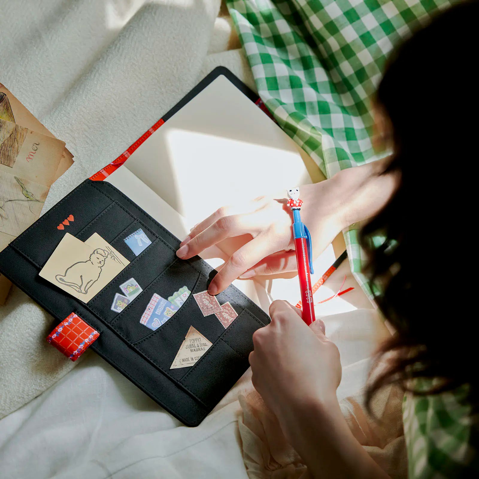 In addition to the cover, we have prepared a variety of items using Kitagishi’s work, such as stickers, a sticky note roll, an embroidered bookmark, a mini folder, a mini letter set, an Everlasting “Paper” Bag and a ballpoint pen, which you can use to match your techo.
