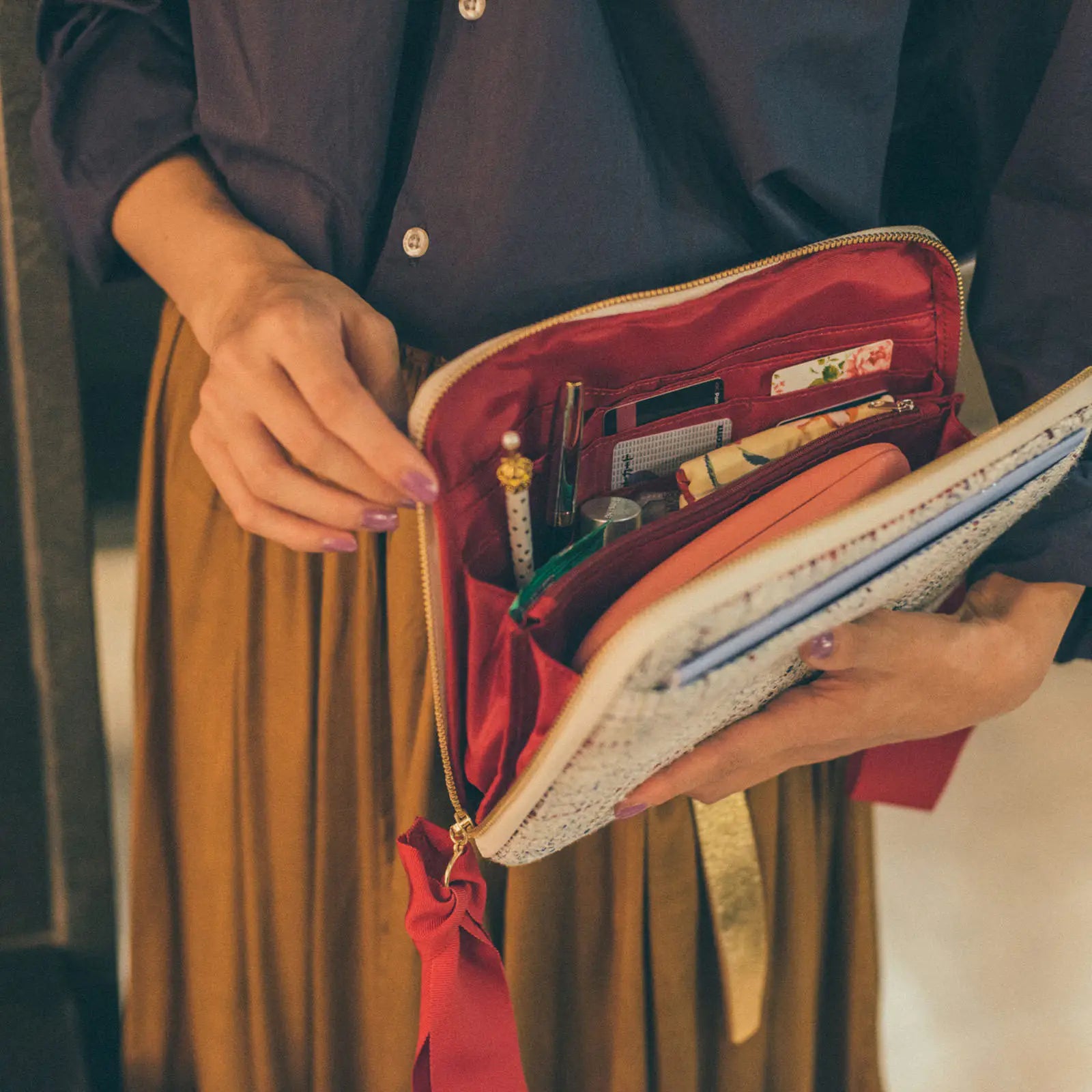 This pouch is like carrying an entire drawer with you wherever you go. Keep it on hand to easily access stationery whenever you need it, or use it on your desk to safely store your important items.