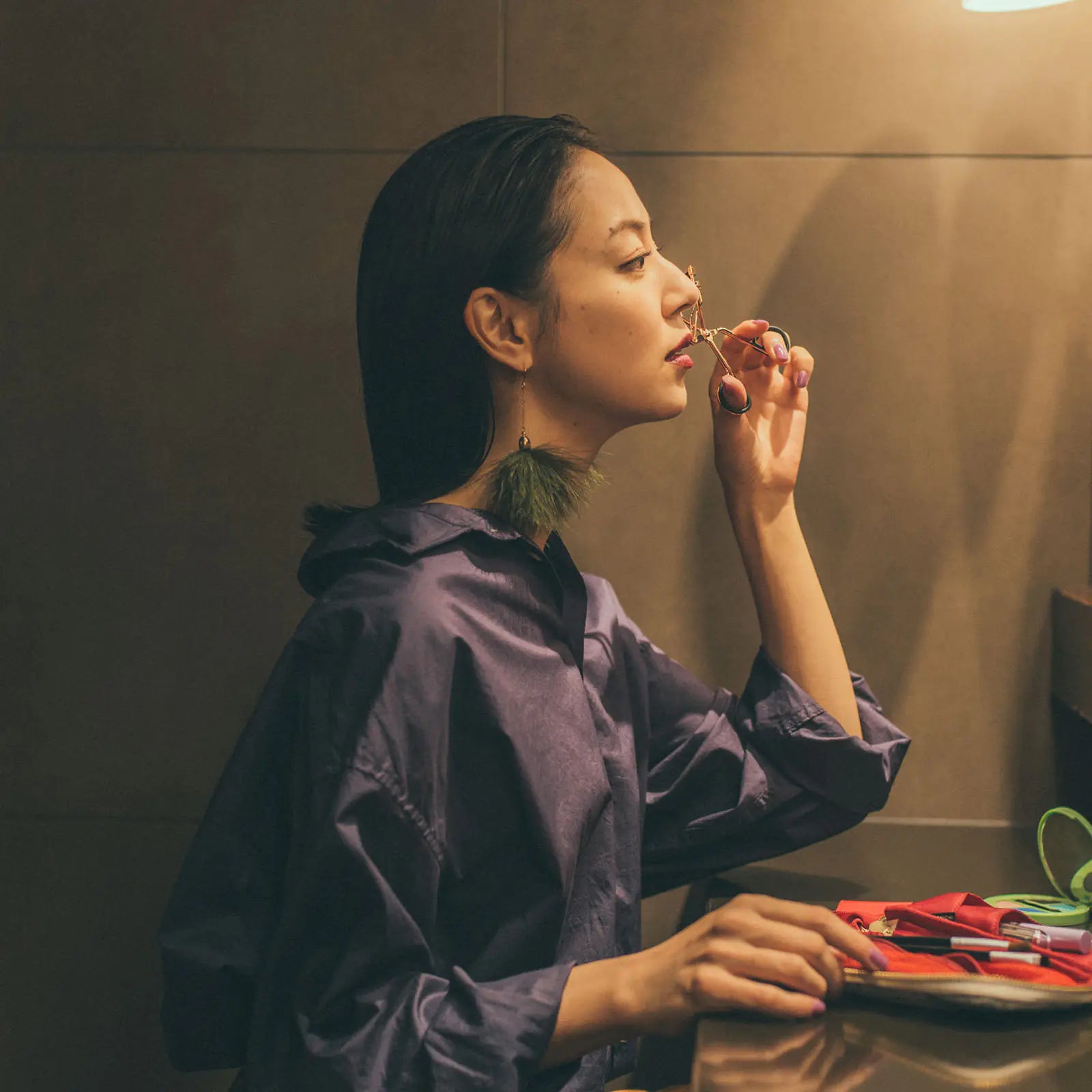 The pouch can hold many items, but its slim size and compact shape make it easy to fit into a purse or bag. A loop-shaped strap has been attached to the zipper to make it easy to hold.