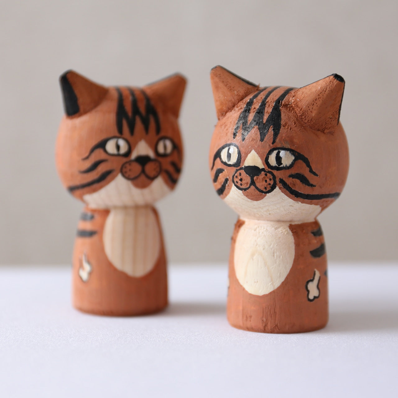 Japanese Kokeshi Doll - Brown Tabby Cat -