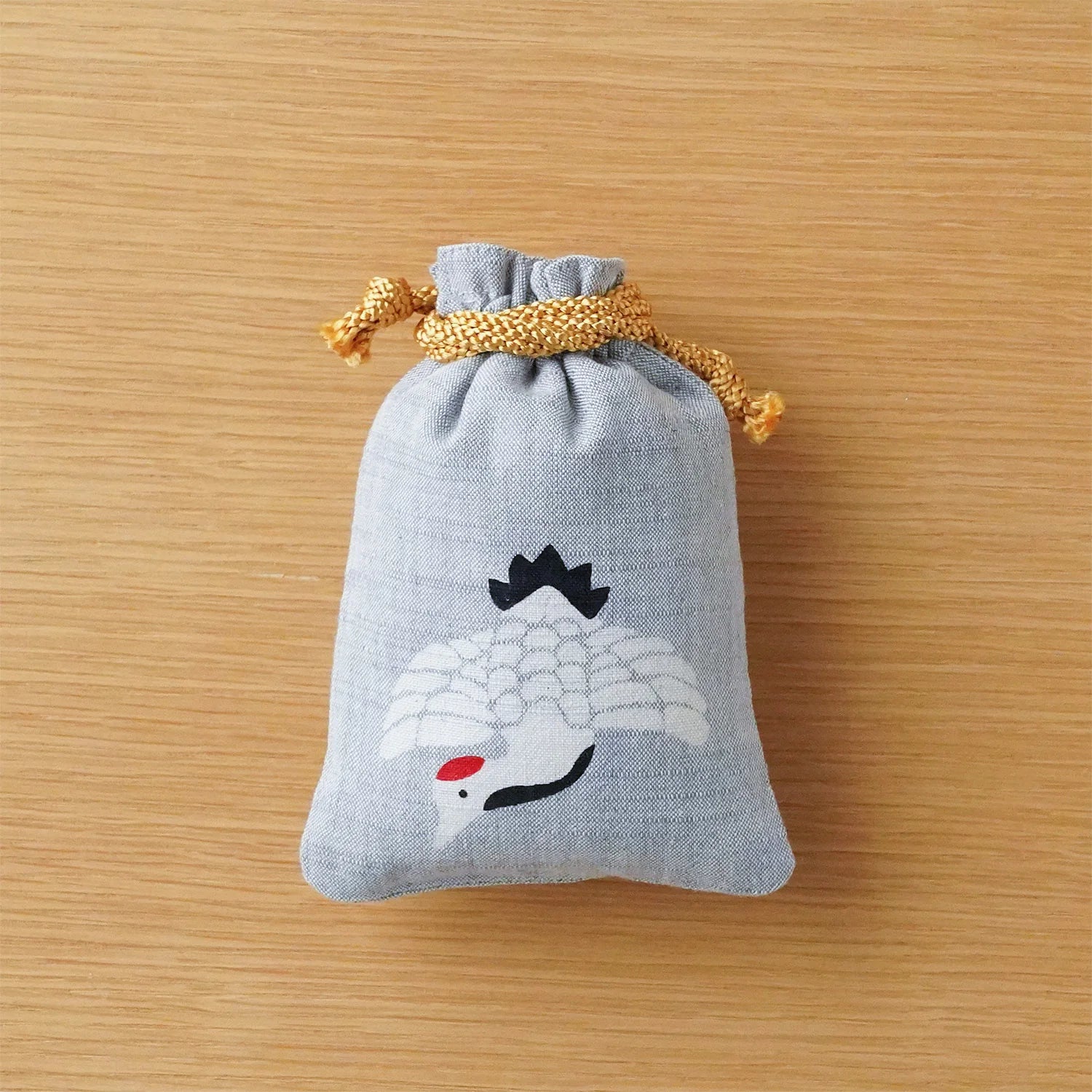 ■ Katazome Small Talisman Bag - Crane -, Drawstring Pouch, Japanese traditional craft bag