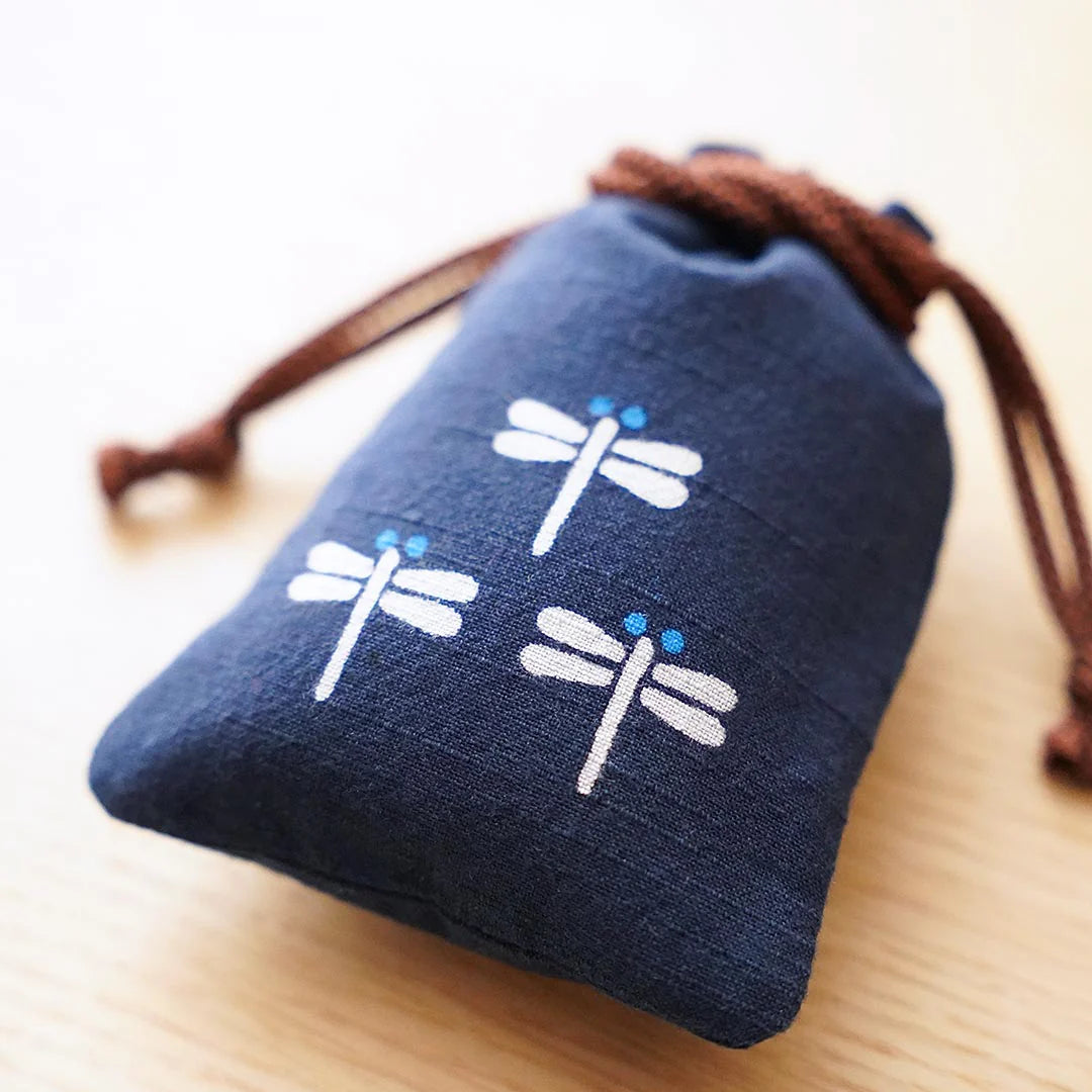 Katazome Small Talisman Bag - Dragonfly -, Drawstring Pouch, Japanese traditional craft bag