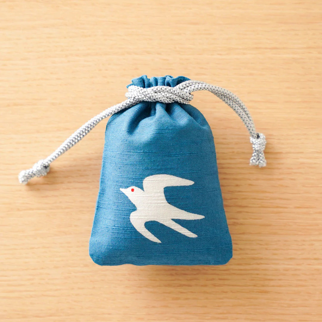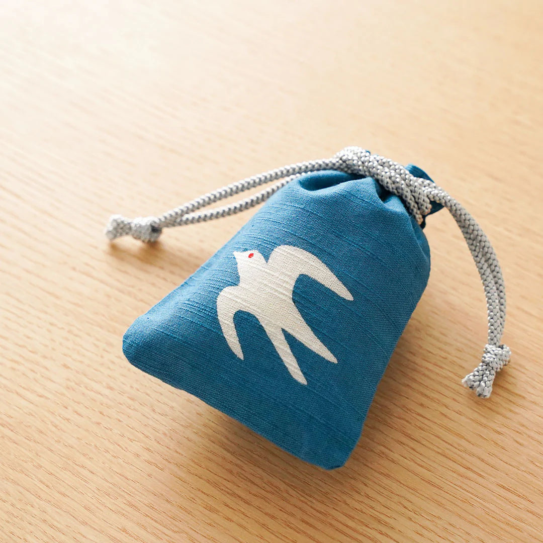 Katazome Small Talisman Bag - Swallow -, Drawstring Pouch, Japanese traditional craft bag