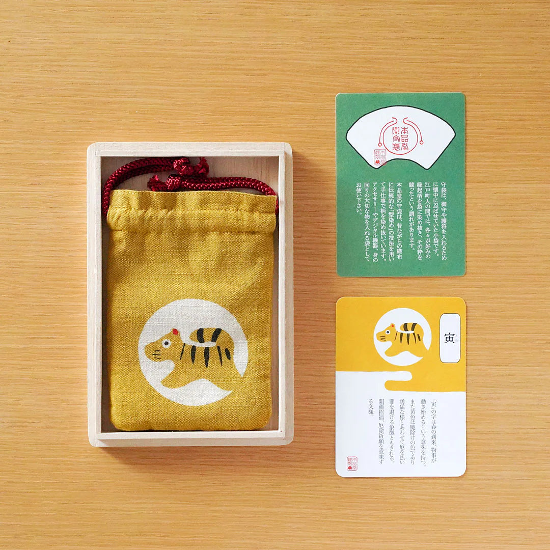 Katazome Small Talisman Bag - Tiger -, Drawstring Pouch, Japanese traditional craft bag