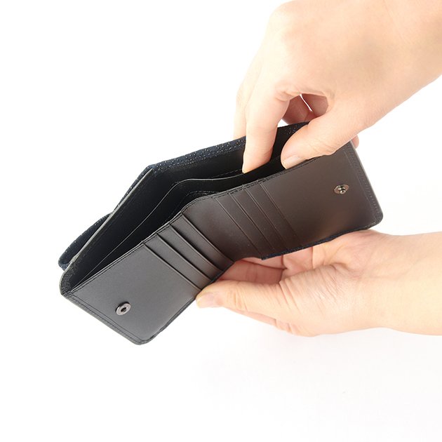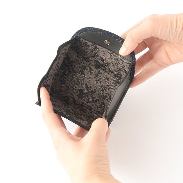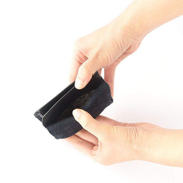 Koshu Inden Japanese Deerskin Leather with Urushi (Japanese Lacquer) Fold Wallet - Asanoha (hemp leaf) Pattern / Iron Blue - , Made in Japan, Japanese Leather Wallet