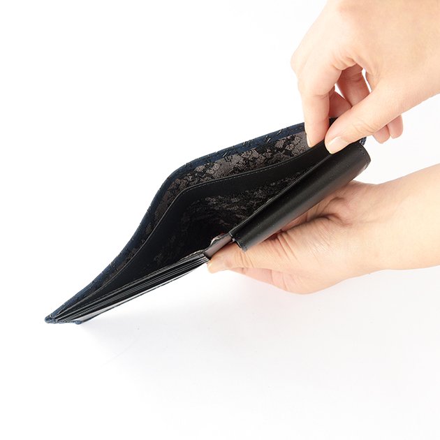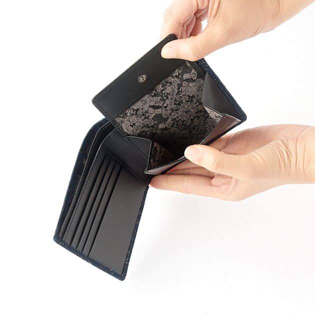 Koshu Inden Japanese Deerskin Leather with Urushi (Japanese Lacquer) Fold Wallet - Dragonfly / Deep Indigo - , Made in Japan, Japanese Leather Wallet