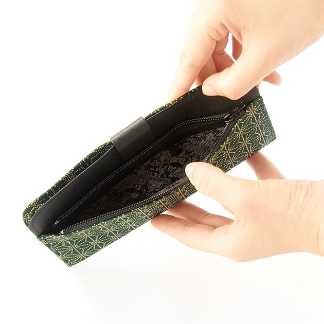 Koshu Inden Japanese Deerskin Leather with Urushi (Japanese Lacquer) Long Wallet - Asanoha (hemp leaf) Pattern / Dark Green - , Made in Japan, Japanese Leather Wallet