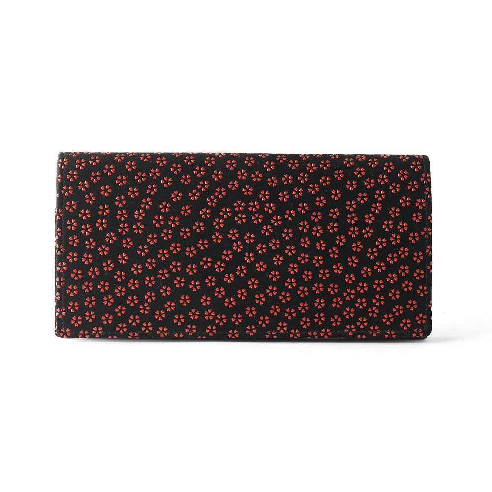 Koshu Inden Japanese Deerskin Leather with Urushi (Japanese Lacquer) Long Wallet - Cherry Blossom / Gray-Black - , Made in Japan, Japanese Leather Wallet