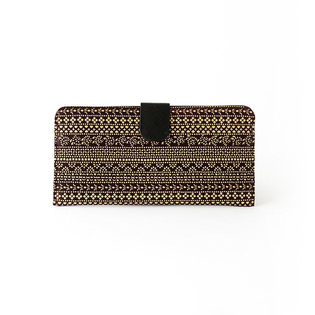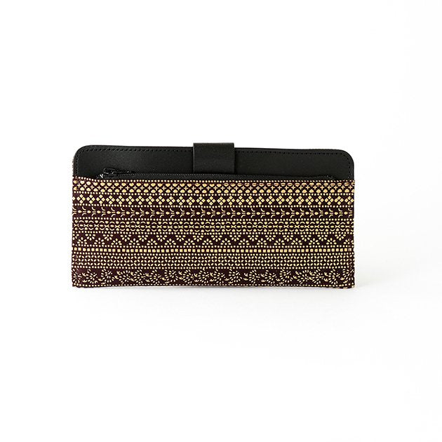 Koshu Inden Japanese Deerskin Leather with Urushi (Japanese Lacquer) Long Wallet - Tsumugi (traditional Japanese silk fabric) Pattern / Dusky purple - , Made in Japan, Japanese Leather Wallet