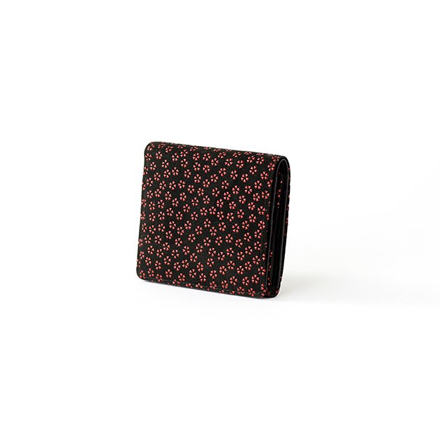 Koshu Inden Japanese Deerskin Leather with Urushi (Japanese Lacquer) Trifold Wallet - Cherry Blossom / Gray-Black - , Made in Japan, Japanese Leather Wallet