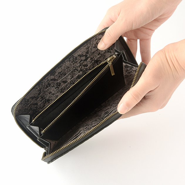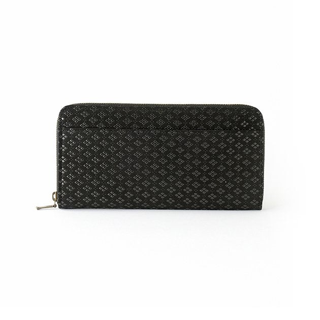 Koshu Inden Japanese Deerskin Leather with Urushi (Japanese Lacquer) U-Zip Long Wallet - Hishimon (Japanese Family Crest Pattern) / Gray-Black - , Made in Japan, Japanese Leather Wallet