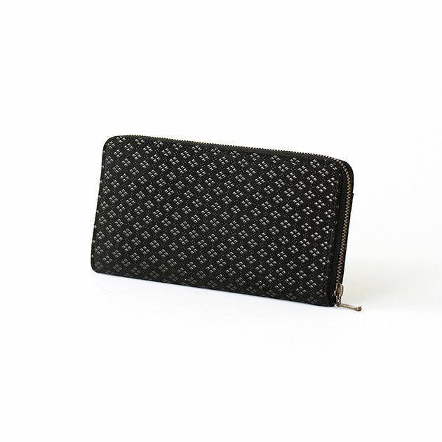 ■ Koshu Inden Japanese Deerskin Leather with Urushi (Japanese Lacquer) U-Zip Long Wallet - Hishimon (Japanese Family Crest Pattern) / Gray-Black - , Made in Japan, Japanese Leather Wallet