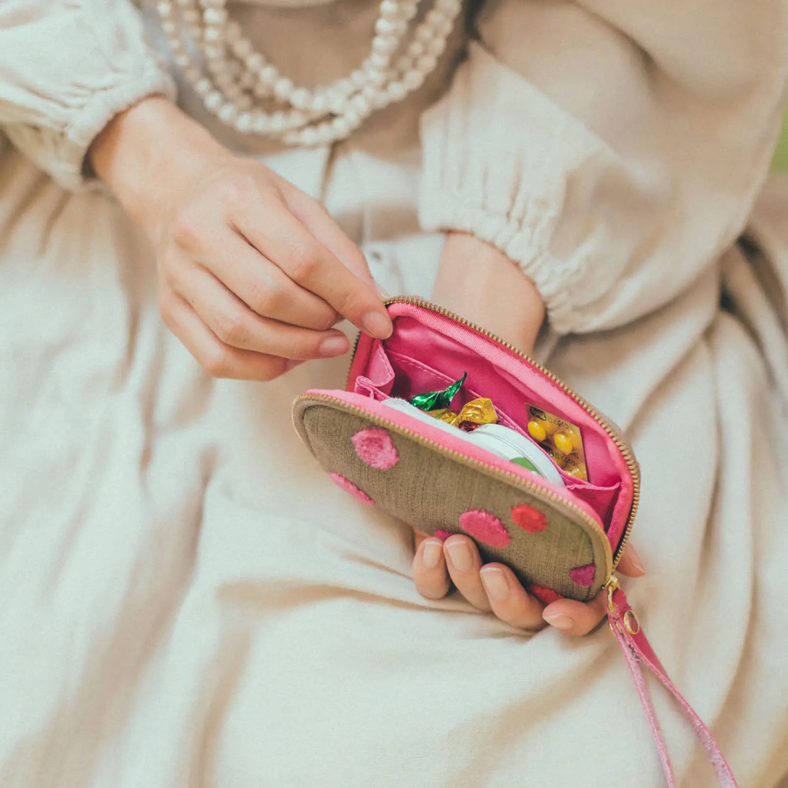 ■ Koyaguchi Pile Fabric: Pink Sparkle Drawer Pouch Pocket, Hobonichi Drawer Pouch Pocket