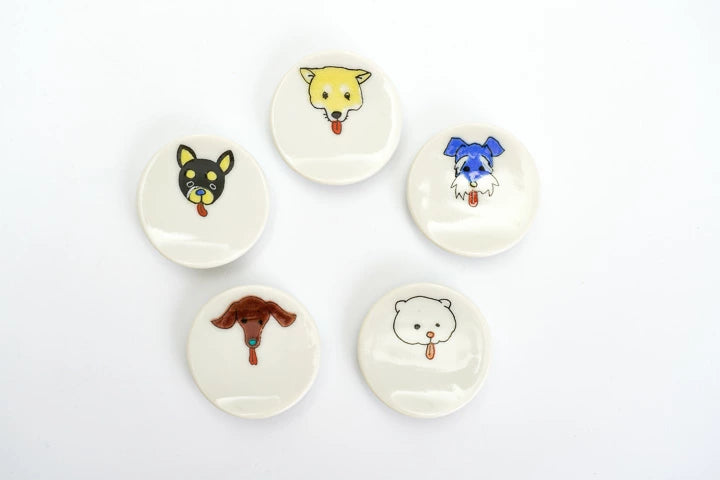 ■ Kutani Yaki(ware) Chopstick Rest Set of 5pcs - Dog -, Japanese Kutani Ware Chopstick Rest
